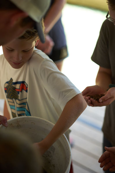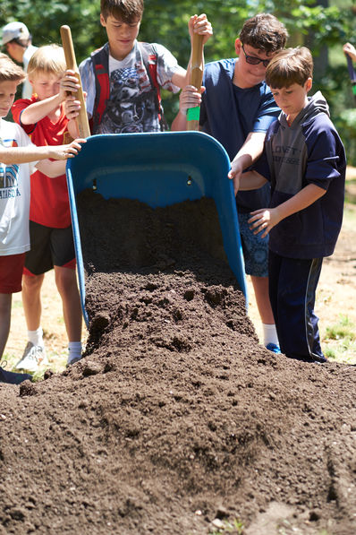At the F.A.R.M. Doug was demonstrating the process of composting. He and the campers walked over to a large plastic bin, its lid a layer of burlap. “I didn’t even know this was here,” said a camper, assuming that any process involving decomposed vegetables would be cloistered far away where no one could be accosted by its stench. But only when you put your nose over the container itself could you detect the mild but odiferous soup of decay.