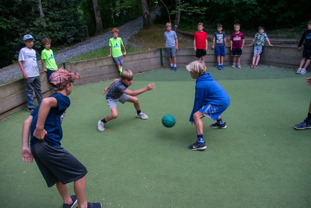 Warrior Ball is an outdoor form of dodgeball played in an octagon-shaped arena called a ‘Warrior Ball Pit.’ Our Warrior Ball Pit is right next to the Dining Hall, by the ping pong and foosball tables!