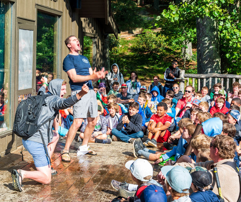 Every day we have several trips out at once, full of excited campers heading on fun adventures. Camp is unique because boys are able to try new activities and visit new places that they may otherwise never be exposed to. The announcements are important to recruit boys on new kinds of trips, and help them realize that they might really enjoy a new activity. Just today, we had boys paddling the Green River Narrows, climbing Gilbert’s Rock, enjoying Sliding Rock, riding bikes at Dupont, and hiking in Gorges. I’m sure it was hard for the boys to decide which trip to choose after such great announcements, but the good news is that tomorrow we get the opportunity to do it all over again!