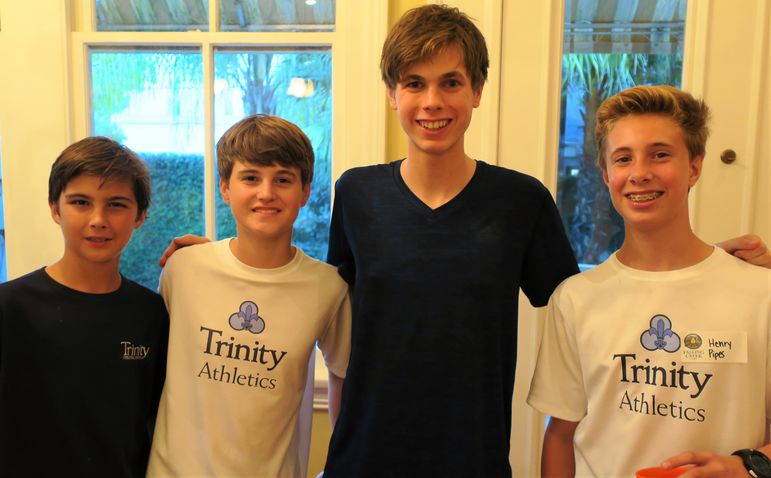 (l to r) Justin Schmidt, Calder Schmidt, Jordan Bennett, & Wardlaw Witherspoon. Justin was on the waterfront staff in 1989 with Marisa and Goody, and their son Calder has been an FCC camper for 8 summers. Jordan will be returning for his 7th summer. Wardlaw was a camper when Yates and Goody were campers and counselors and I know he was thrilled to be here tonight to introduce FCC to his son.